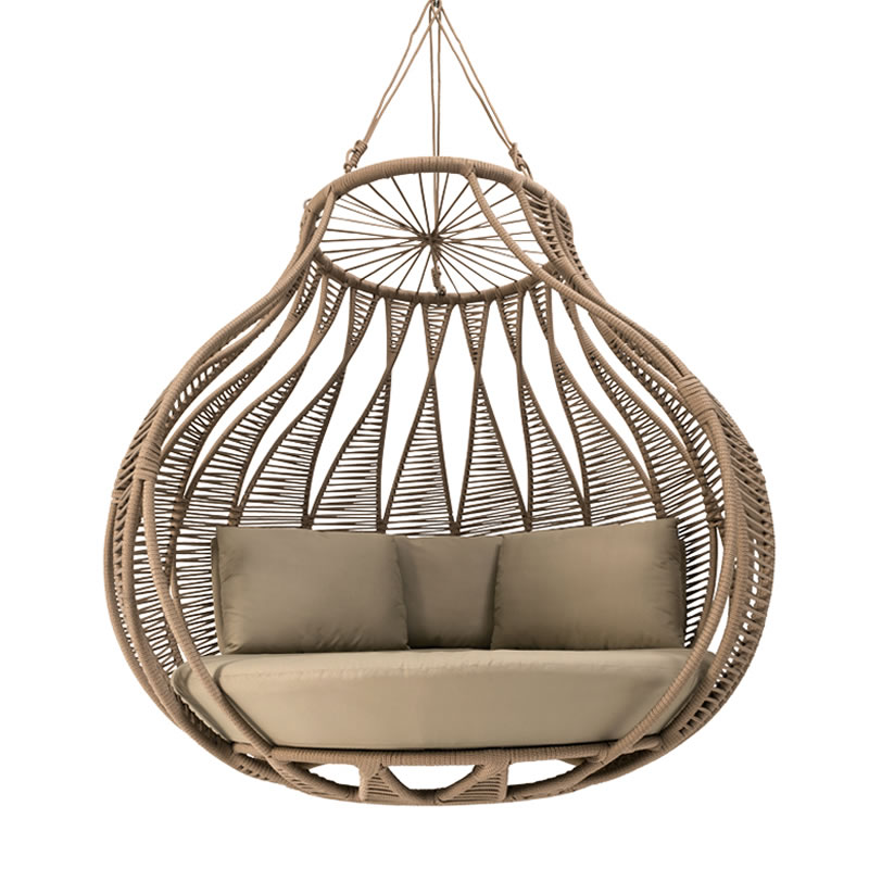 Com design sofisticado e materiais de alta qualidade, o Balanço Yasmin une beleza e durabilidade. A estrutura em alumínio com pintura eletrostática garante resistência às intempéries, enquanto a corda náutica, cuidadosamente trabalhada, confere um toque artesanal e elegante. As almofadas removíveis em tecido impermeável proporcionam conforto absoluto e praticidade no dia a dia. Com amplas dimensões de 1.70m de largura, 1.55m de profundidade e 1.50m de altura, o Balanço Yasmin oferece espaço de sobra para você se esticar e relaxar.