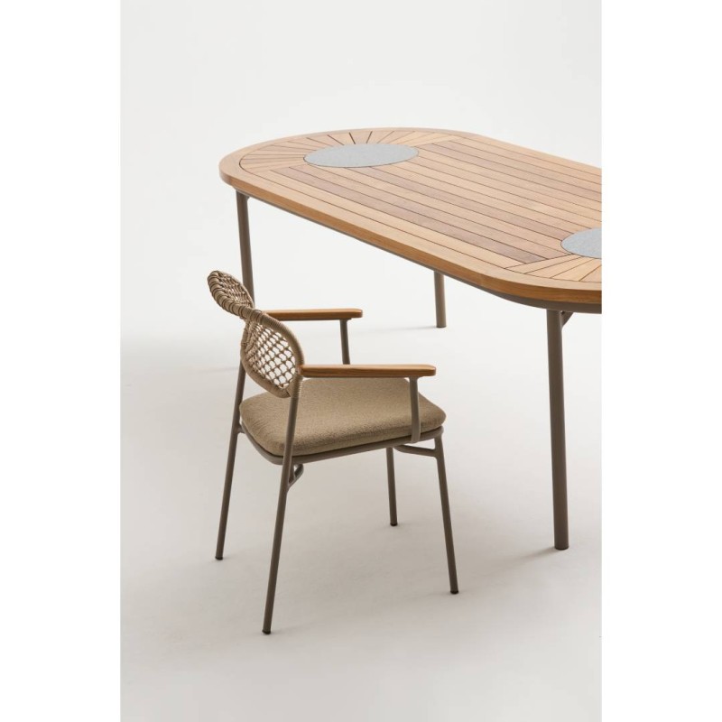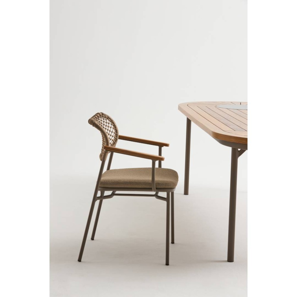 A Cadeira Doce é ideal para mesas de jantar em ambientes internos, lounges, varandas cobertas e áreas gourmet. Sua combinação de alumínio, tecido e madeira Teca permite integrar estilos modernos, rústicos ou tropicais com a mesma elegância.