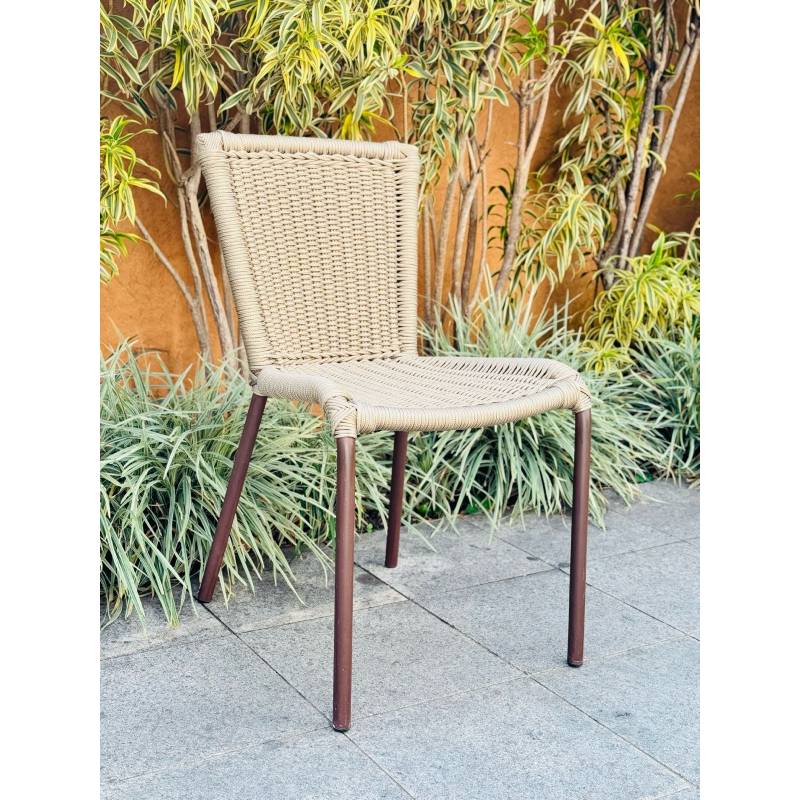 A cadeira é produzida com materiais de alta performance que exigem pouca manutenção. Para limpeza, basta utilizar pano macio, água e sabão neutro. A corda náutica é resistente a sol e umidade.