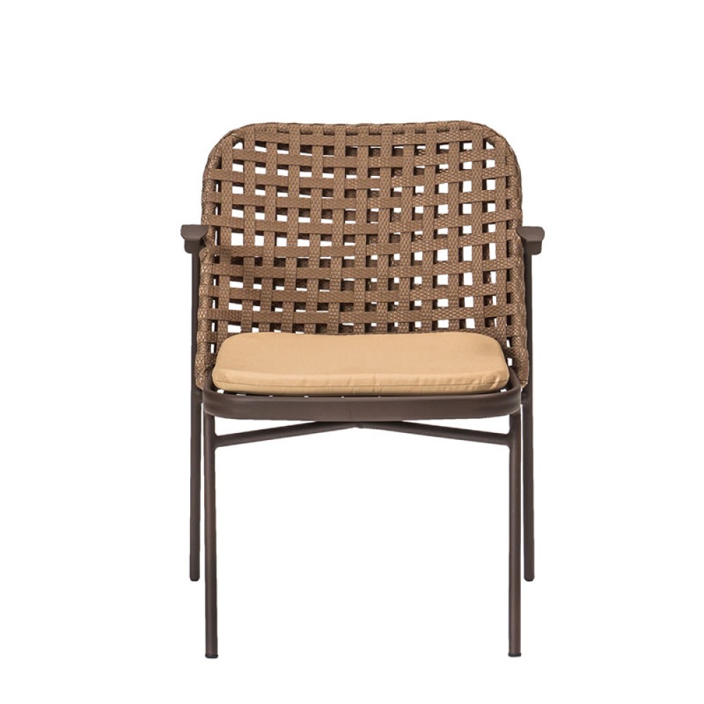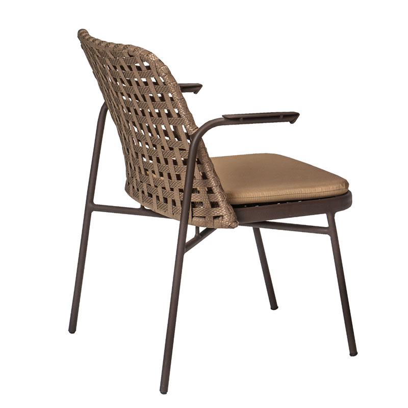 Cadeira em corda náutica com estrutura de alumínio, ideal para ambientes internos e externos. Confortável, durável e de fácil manutenção.
