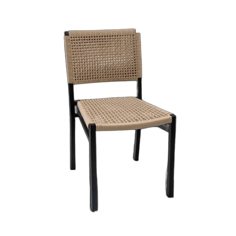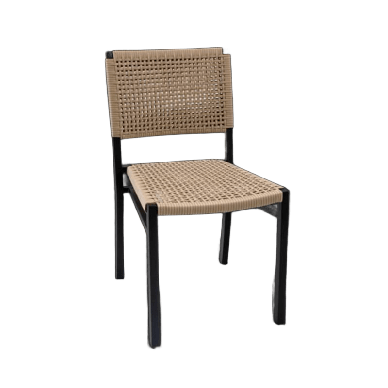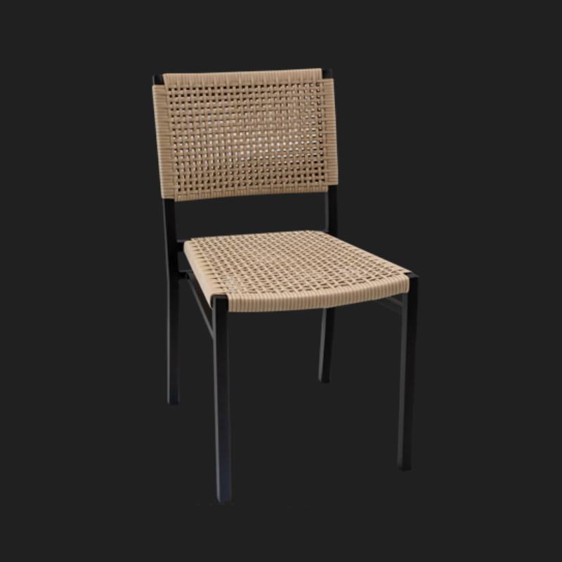 A Cadeira Genebra sem braço traduz a essência do design contemporâneo aliado ao conforto e à durabilidade exigidos para ambientes sofisticados. Seu trançado em corda náutica, cuidadosamente aplicado, cria uma superfície envolvente que abraça o corpo com conforto e leve elasticidade, tornando a experiência de uso agradável mesmo em longos períodos à mesa.