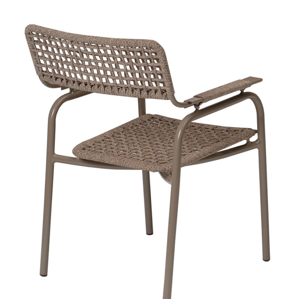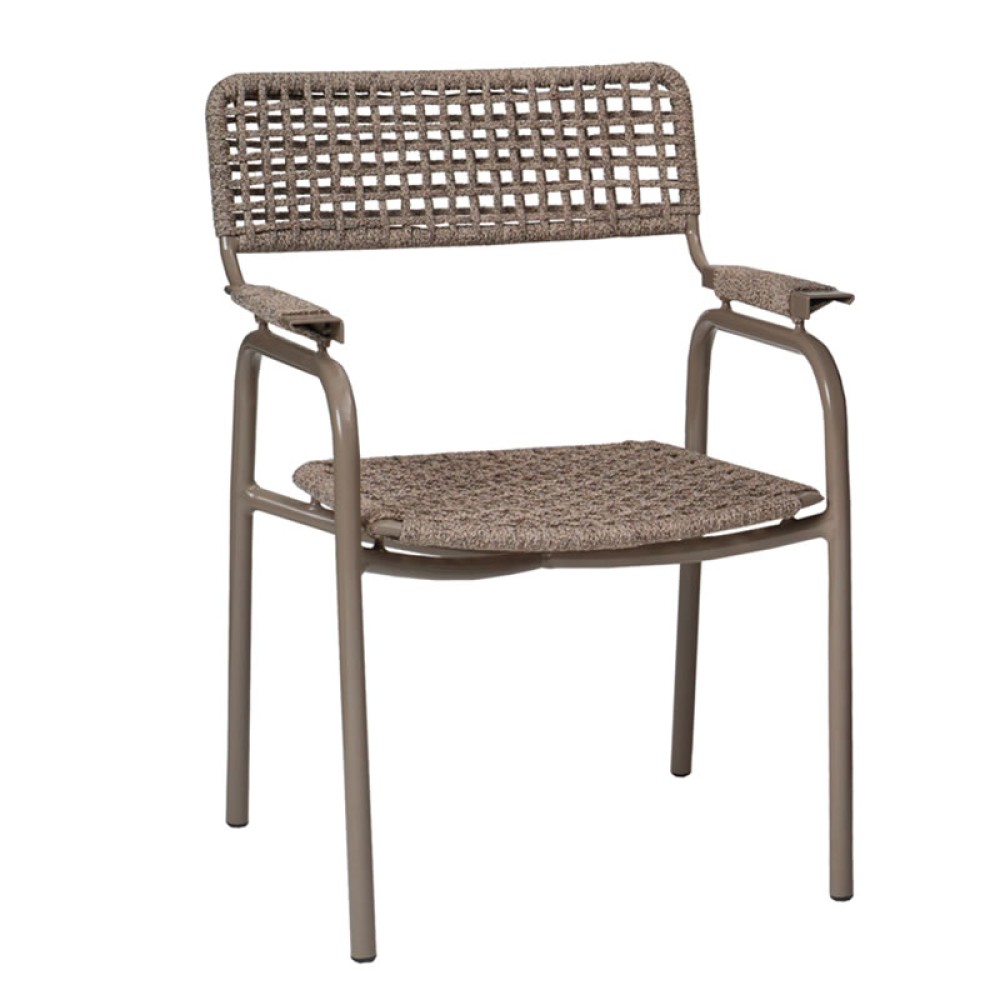 Cadeira em corda náutica com estrutura de alumínio, ideal para ambientes internos e externos. Confortável, resistente e de fácil manutenção.
