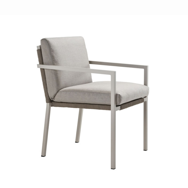Cadeira para ambiente externo, estrutura em alumínio recoberto por pintura eletrostática, trama em corda náutica e almofadas removíveis em tecido impermeável oferecendo grande conforto ao sentar. Ideal para ser utilizada em sua varanda, piscina, jardim ou até mesmo sua área interna.