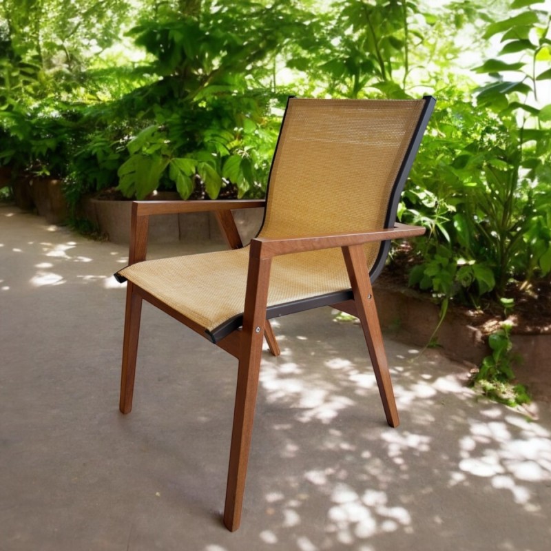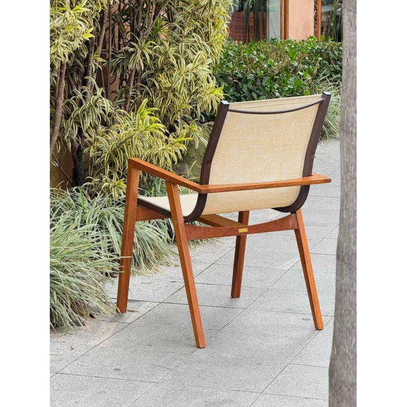 Cadeira Lívia com Tela Sling e Braços: Conforto e Estilo em Harmonia com a Natureza