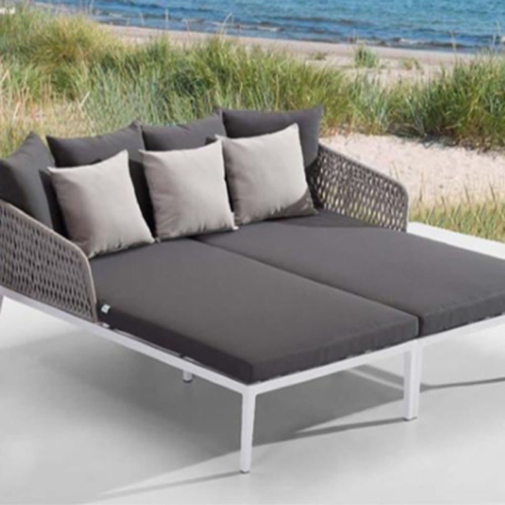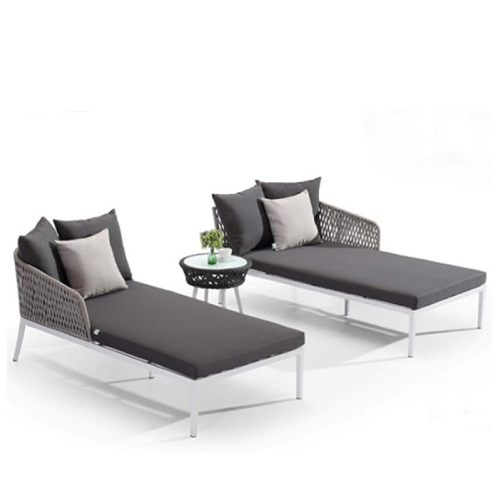Chaise para ambiente externo, estrutura em alumínio recoberto por pintura eletrostática, trama em corda náutica e almofadas removíveis em tecido impermeável oferecendo grande conforto ao sentar. Ideal para ser utilizada em sua varanda, piscina, jardim ou até mesmo sua área interna.