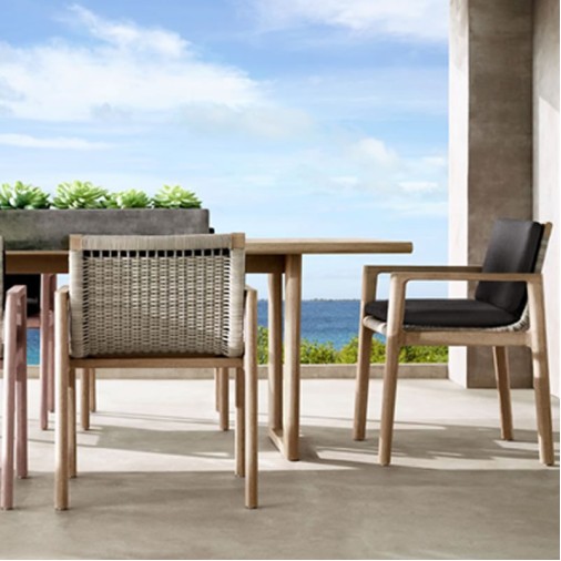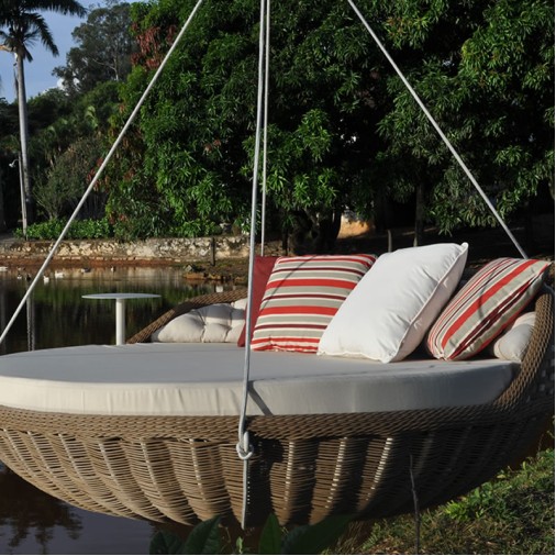 Puff Em Fibra Sintética e Madeira Cumarú San Sebastian