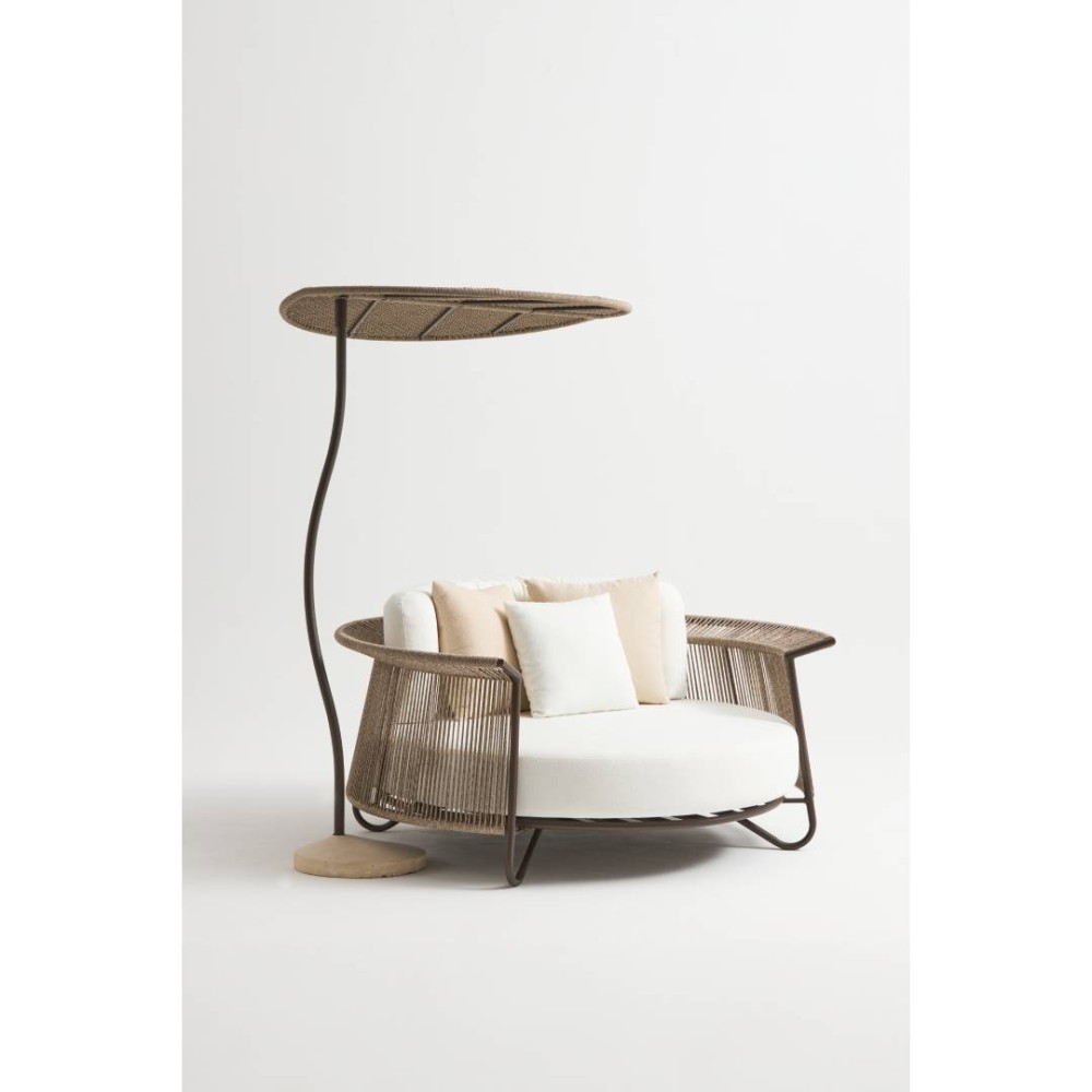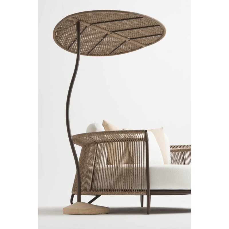 Sombreiro Luna: Estrutura em alumínio resistente e base em cimento robusta, oferecendo sombra parcial sobre a chaise.