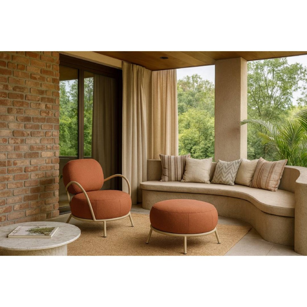 O Conjunto Taná foi desenvolvido para transformar qualquer ambiente em um espaço de relaxamento elegante e funcional. Composto por uma poltrona e um puff, ambos com estrutura em alumínio resistente e assentos em tecido Acquablock impermeável, o conjunto oferece durabilidade, conforto e praticidade, perfeito para áreas internas e externas.