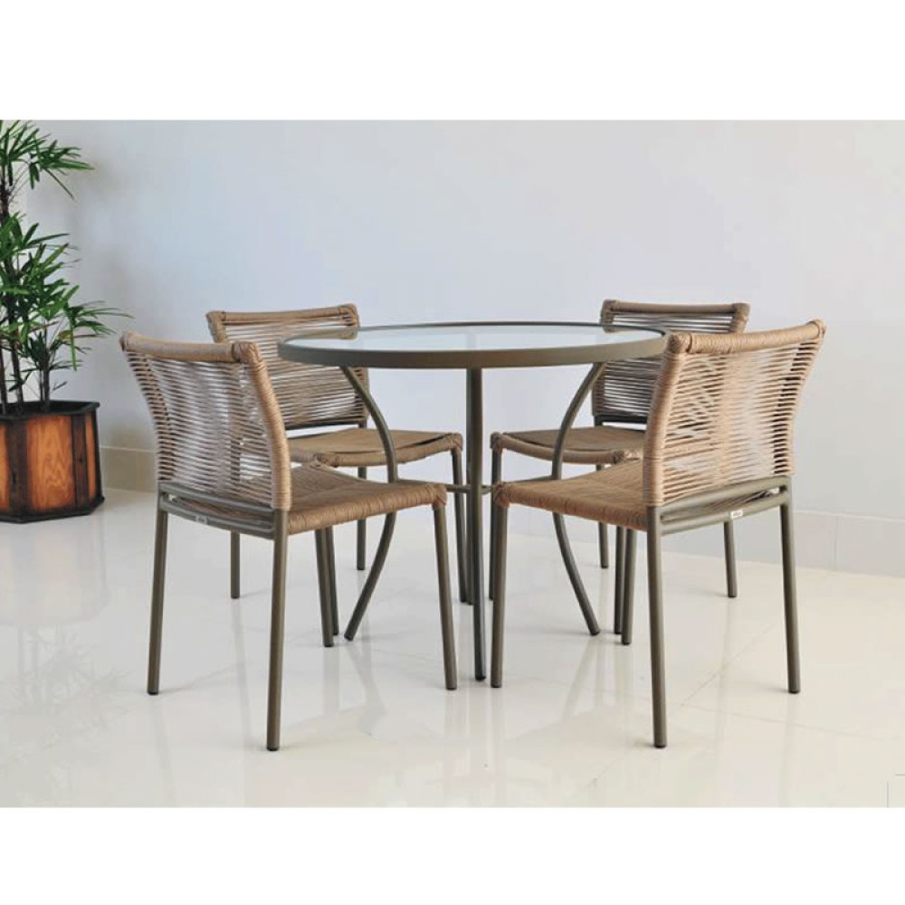 Transforme seu espaço externo em um ambiente sofisticado e aconchegante com o Conjunto Audi. Composto por uma mesa (1.00m de diâmetro - base) e quatro cadeiras sem braço (0.57m x 0.60m x 0.74m), este conjunto é perfeito para reunir amigos e familiares em momentos de descontração e lazer. A estrutura em alumínio com pintura eletrostática e a trama em corda náutica garantem resistência, durabilidade e um toque de elegância. O Conjunto Audi é ideal para varandas, jardins, piscinas ou áreas internas, adaptando-se perfeitamente ao seu estilo. (Observação: o tampo de vidro para a mesa não está incluso neste conjunto)