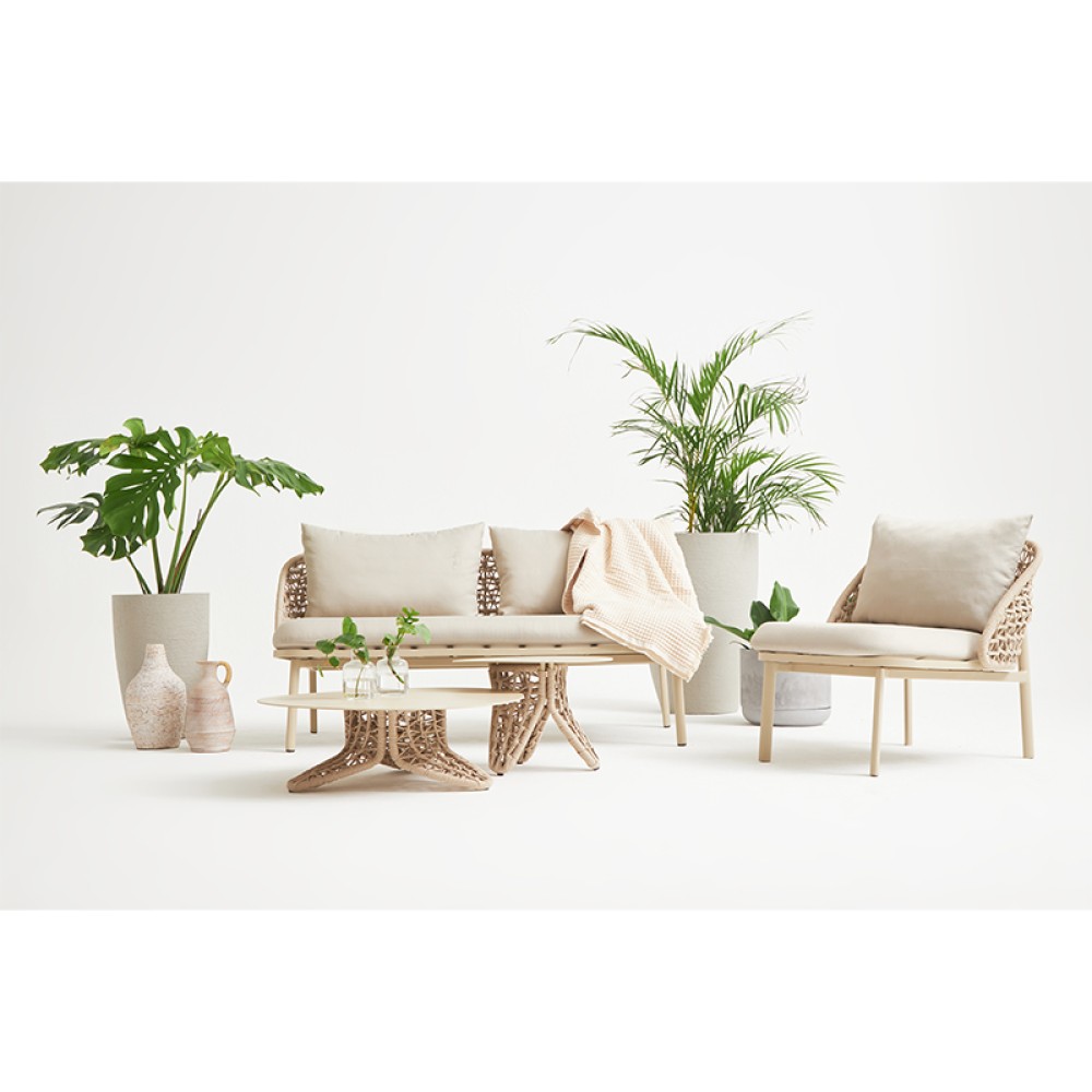 | Conjunto | 1 Sofá + 1 Mesa Centro + 1 Mesa Lateral + Poltrona |