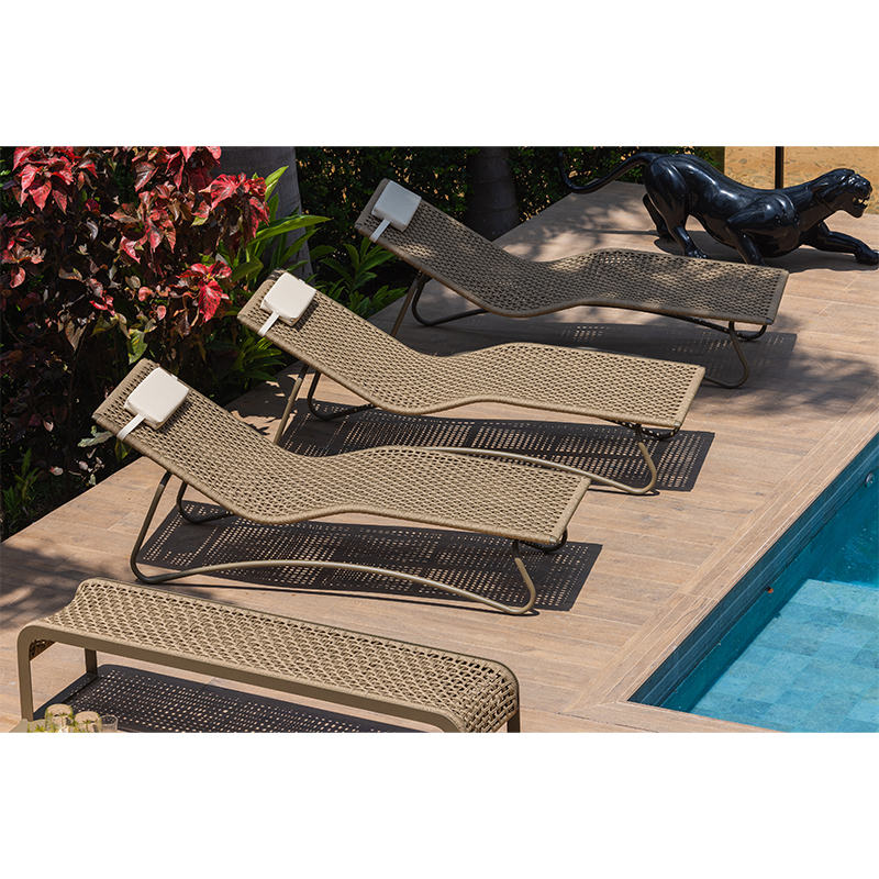 Espreguiçadeira para ambiente externo, estrutura em alumínio extrudado recoberto por pintura eletrostática revestido por corda náutica. Ideal para ser utilizada em sua varanda, piscina, jardim ou até mesmo sua área interna.