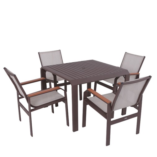| Acabamentos | Tela Sling / Alumínio / Madeira Cumarú |