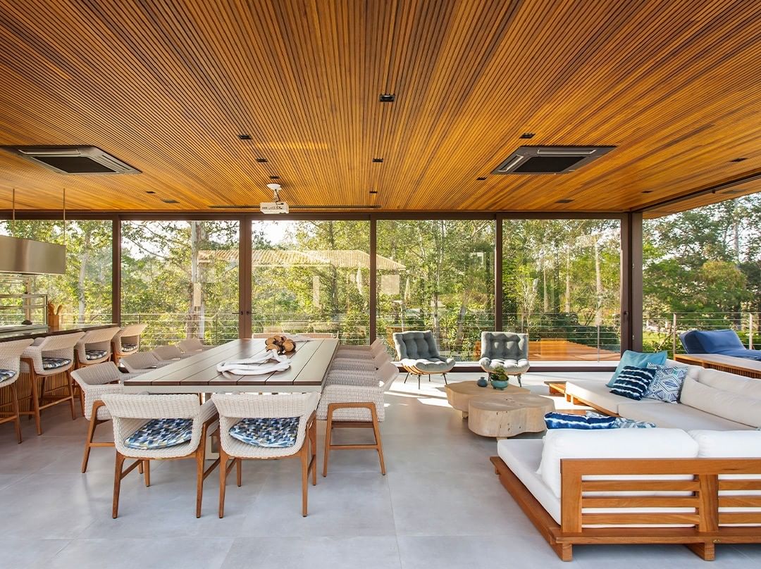 O luxo contemporâneo abandonou o brilho e abraçou a calma. Cada detalhe importa: as texturas, a ergonomia, o silêncio visual. Móveis com estrutura em madeira natural, corda náutica trançada à mão e tecidos suaves como o Acquablock criam uma atmosfera de equilíbrio entre estética e bem-estar.
