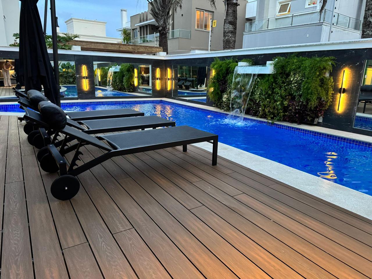 Áreas próximas à água não são espaços de passagem. Elas existem para serem vividas quando se escolhe estar ali. Por isso, exigem soluções que respeitem essa intenção: conforto imediato, organização visual e uma leitura arquitetônica clara.