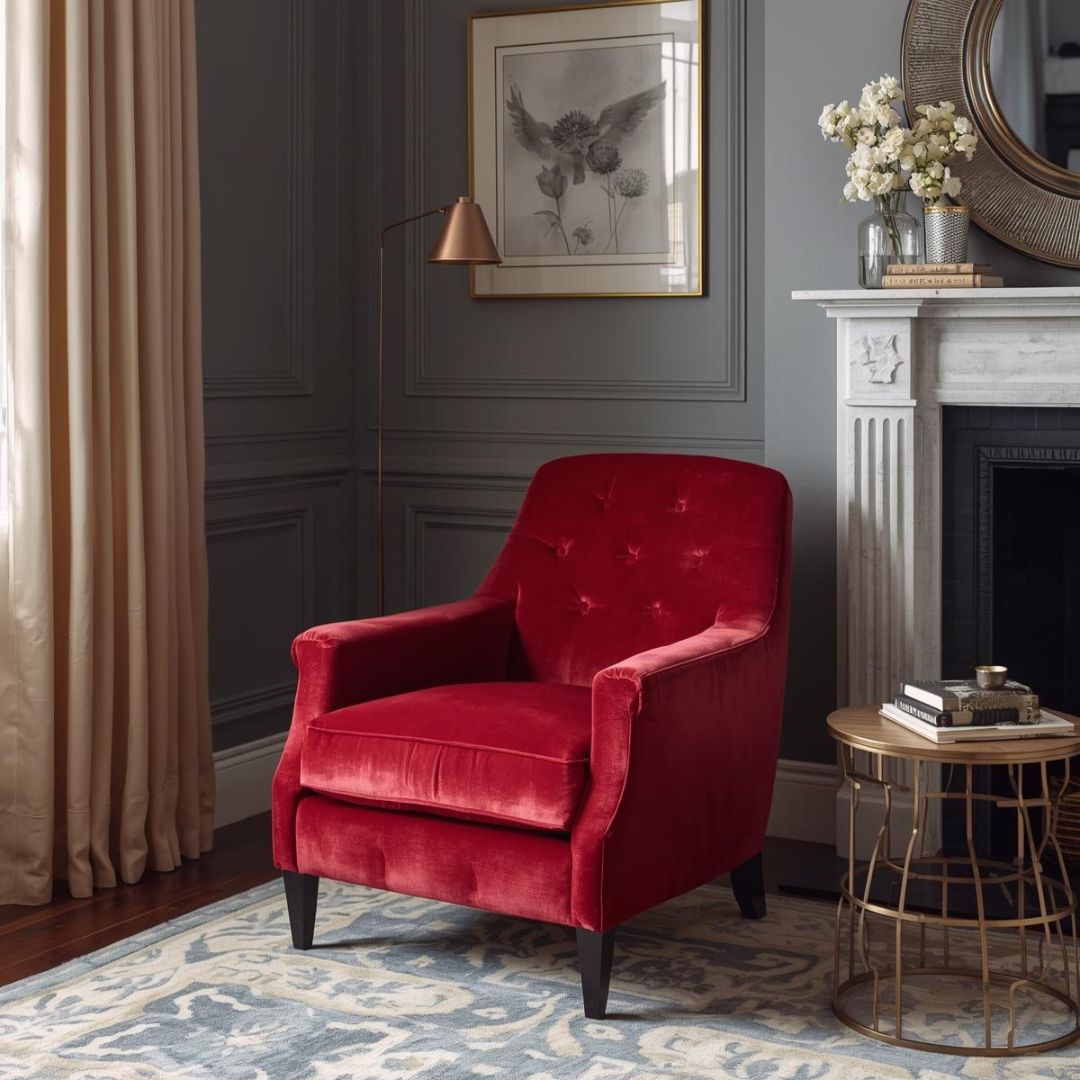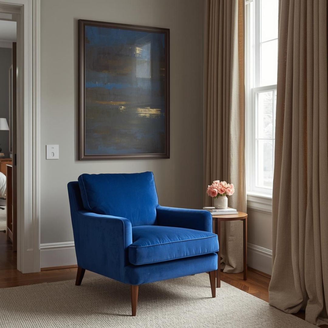 Esses acentos cromáticos aparecem em elementos pontuais, como poltronas, almofadas e objetos decorativos, criando dinamismo sem comprometer a elegância.