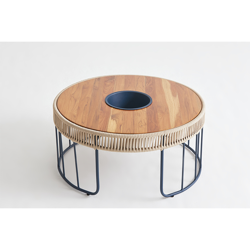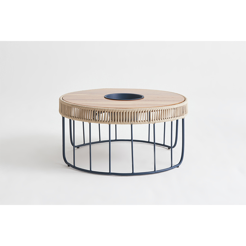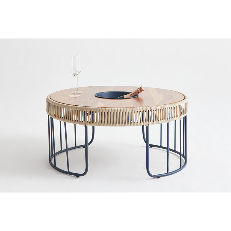 Mesa de Centro com champanheira para ambiente externo, estrutura em alumínio recoberto por pintura eletrostática, trama em corda náutica. Ideal para ser utilizada em sua varanda, piscina, jardim ou até mesmo sua área interna.