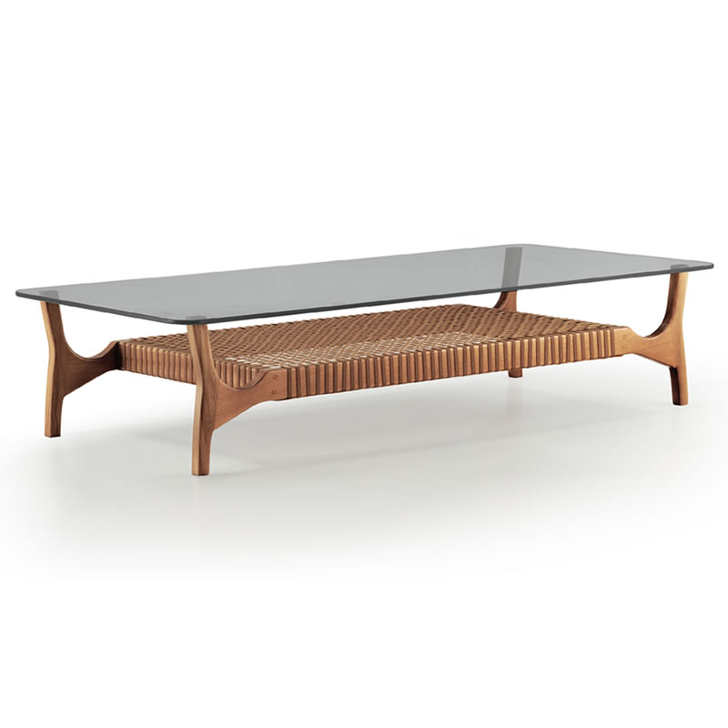 MESA DE CENTRO EM MADEIRA JEQUITIBÁ E CORDA NÁUTICA CUTIÊ