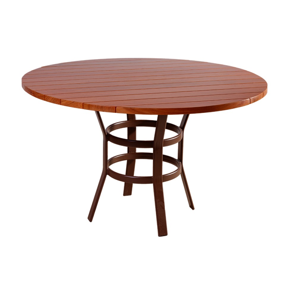 A Mesa Vila Real é confeccionada com madeira maciça Cumaru, conhecida por sua resistência e durabilidade em ambientes externos. A estrutura em alumínio com pintura eletrostática garante leveza e proteção contra intempéries.