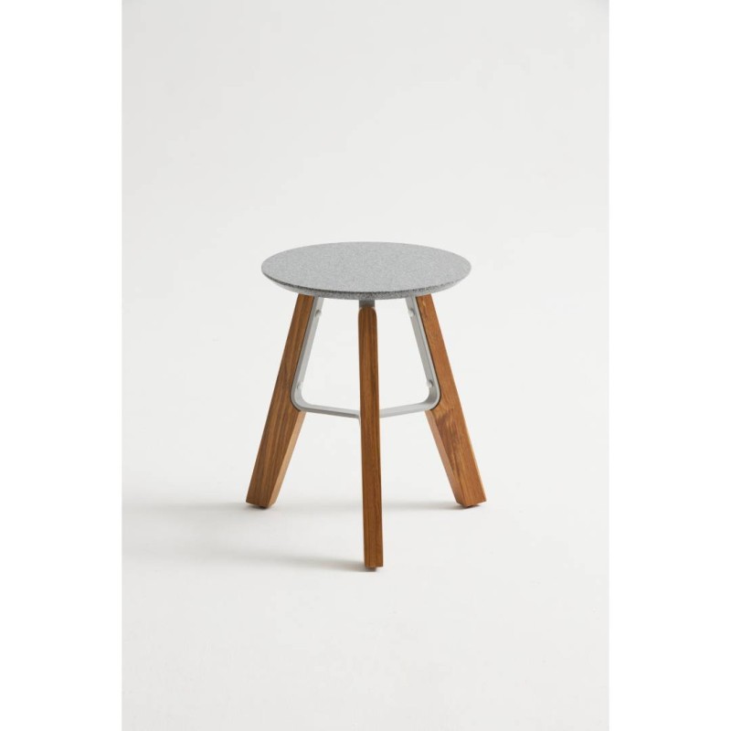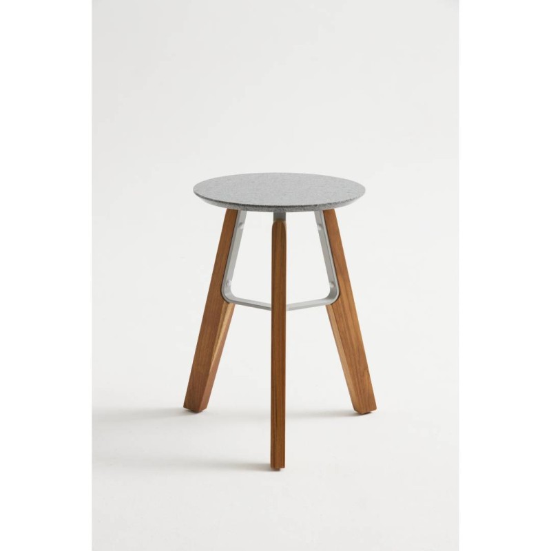 A Mesa Lateral Trempe foi criada para complementar ambientes com um toque de sofisticação e funcionalidade. Sua base em madeira Teca, conhecida pela resistência natural e beleza dos veios, sustenta o tampo em granito, que agrega imponência e praticidade à peça.