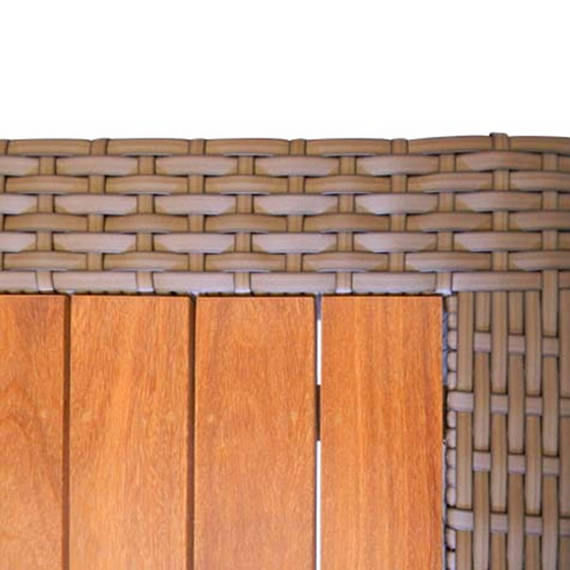 Mesa com design sofisticado e elegante para seu ambiente externo. Estrutura em madeira maciça Cumaru que permite sua exposição a intempéries, revestida em fibra sintética com matéria prima de alta qualidade. Sua durabilidade e elegância é seu diferencial para ser utilizada em sua varanda, piscina, jardim ou até mesmo sua área interna.