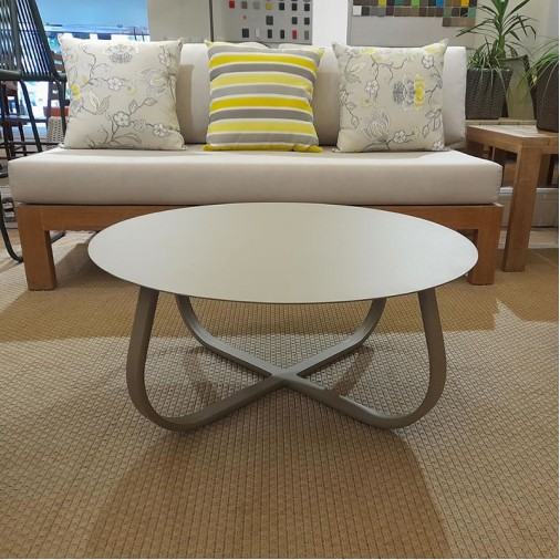 MESA DE CENTRO EM ALUMÍNIO FLORADESCRIÇÃO:Mesa de centro para ambiente externo, estrutura em al..