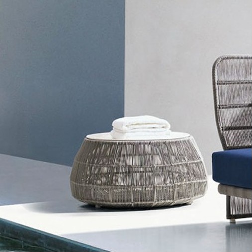 MESA DE CENTRO EM CORDA NÁUTICA GIRONADESCRIÇÃO:Mesa de centro para ambiente externo, estrutura..