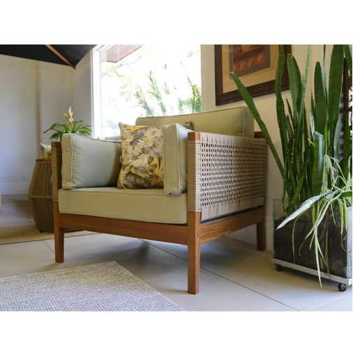 MESA DE CENTRO EM CORDA NÁUTICA MESTREDESCRIÇÃO:Mesa de centro para ambiente externo, estrutura..