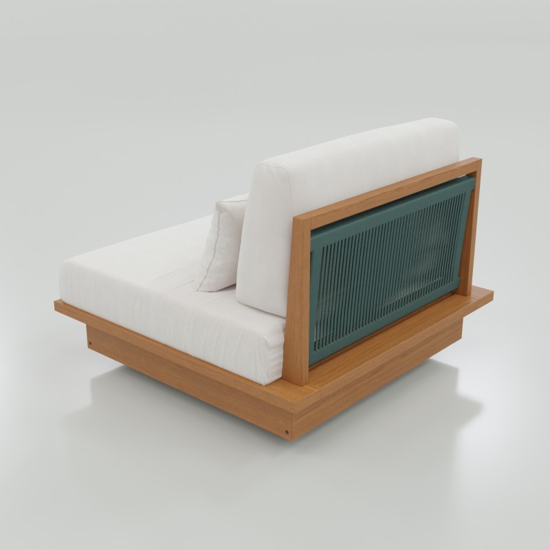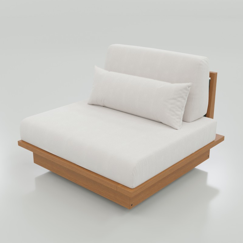 Módulo central com design sofisticado e elegante para seu ambiente externo. Estrutura em madeira maciça Cumaru que permite sua exposição a intempéries, revestida. Almofadas são removíveis, em tecido impermeável, com proteção UV oferecendo grande conforto ao sentar. Sua durabilidade e elegância é seu diferencial para ser utilizada em sua varanda, piscina, jardim ou até mesmo sua área interna.