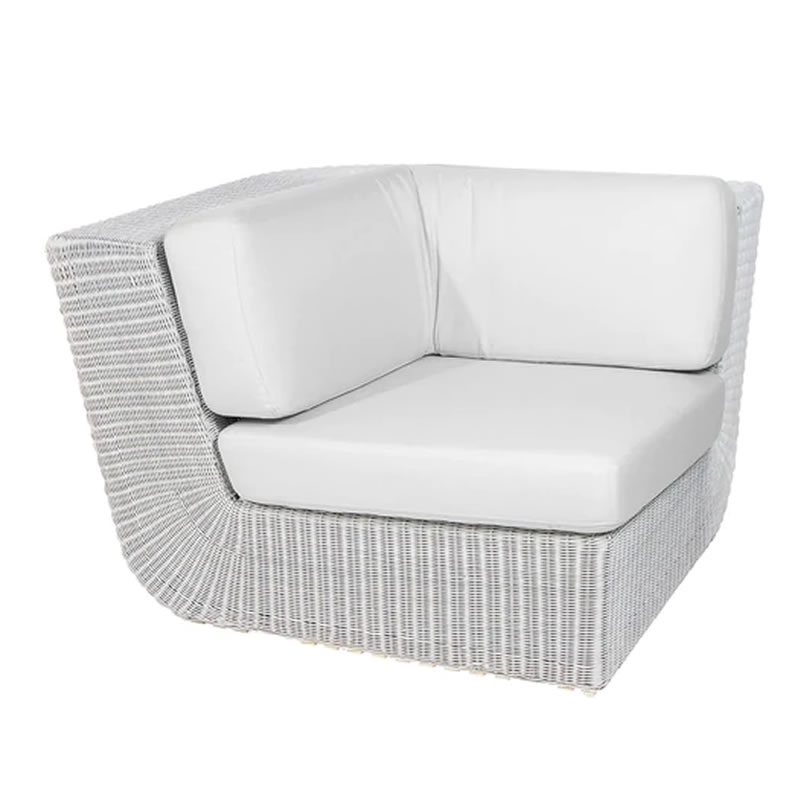 Módulo de canto para ambiente externo, estrutura em alumínio recoberto por pintura eletrostática, trama em corda náutica e almofadas removíveis em tecido impermeável oferecendo grande conforto ao sentar. Ideal para ser utilizada em sua varanda, piscina, jardim ou até mesmo sua área interna.