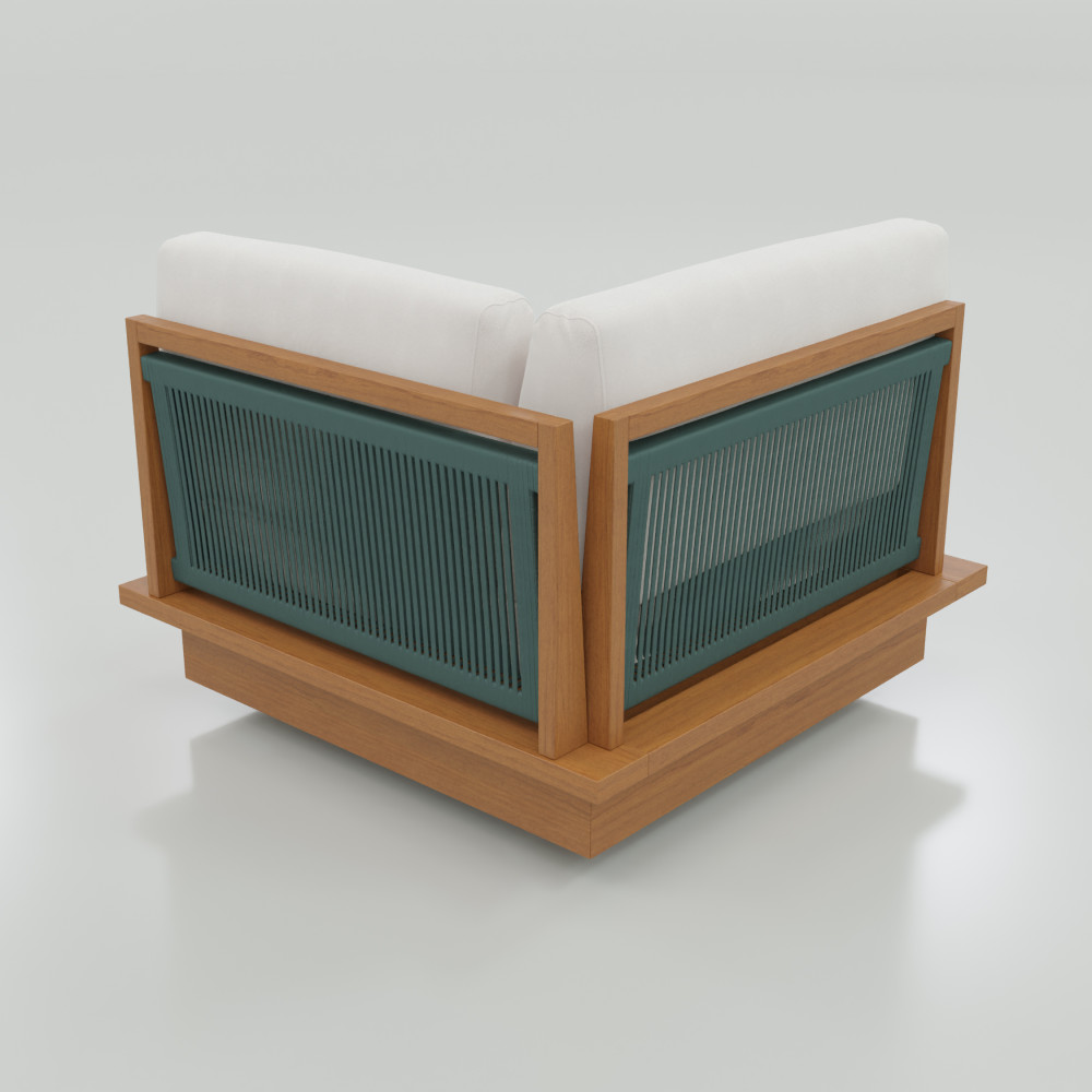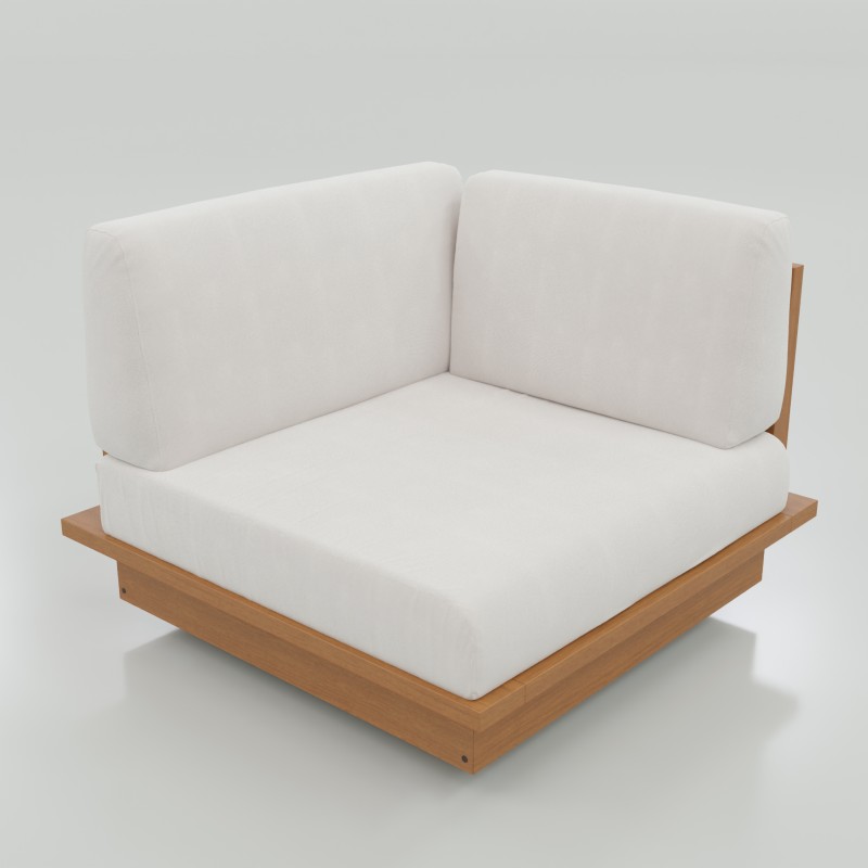 Módulo de canto com design sofisticado e elegante para seu ambiente externo. Estrutura em madeira maciça Cumaru que permite sua exposição a intempéries, revestida. Almofadas são removíveis, em tecido impermeável, com proteção UV oferecendo grande conforto ao sentar. Sua durabilidade e elegância é seu diferencial para ser utilizada em sua varanda, piscina, jardim ou até mesmo sua área interna.