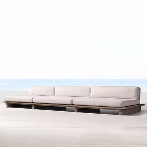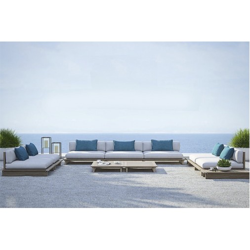 A madeira cumaru, resistente às intempéries, garante a durabilidade e a elegância do módulo, mesmo em áreas externas. Sua almofada, em tecido Acquablock com proteção UV, oferece um conforto excepcional para você e seus convidados, transformando seu espaço em um verdadeiro refúgio de relaxamento. Para garantir a durabilidade da almofada, lembre-se de protegê-la da chuva.
