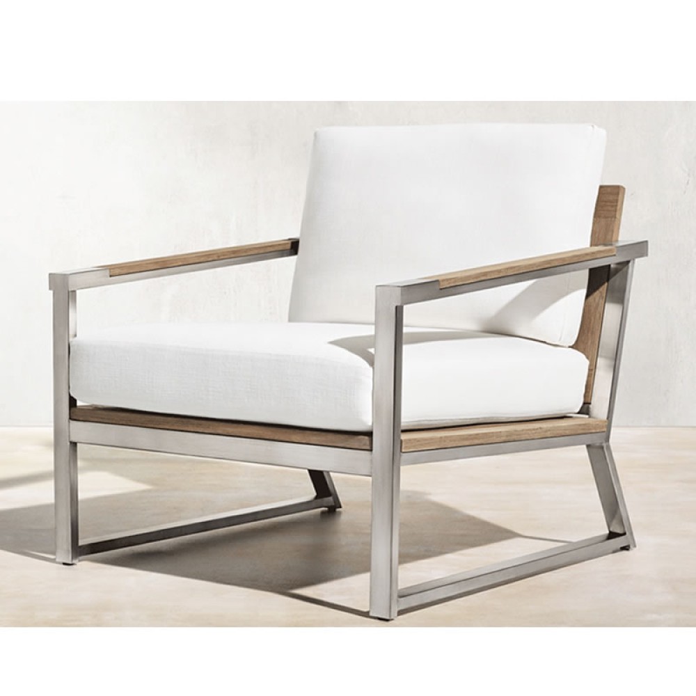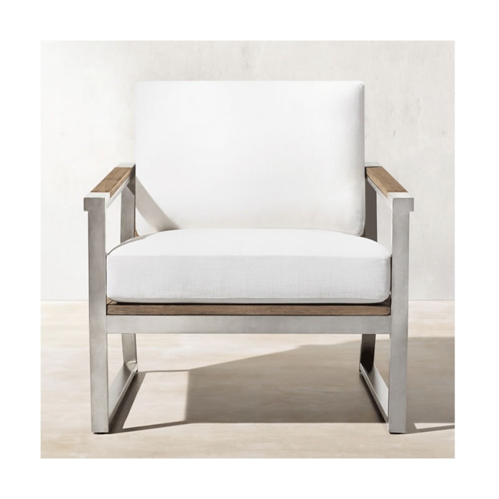 POLTRONA EM ALUMÍNIO E MADEIRA CUMARÚ CRETA