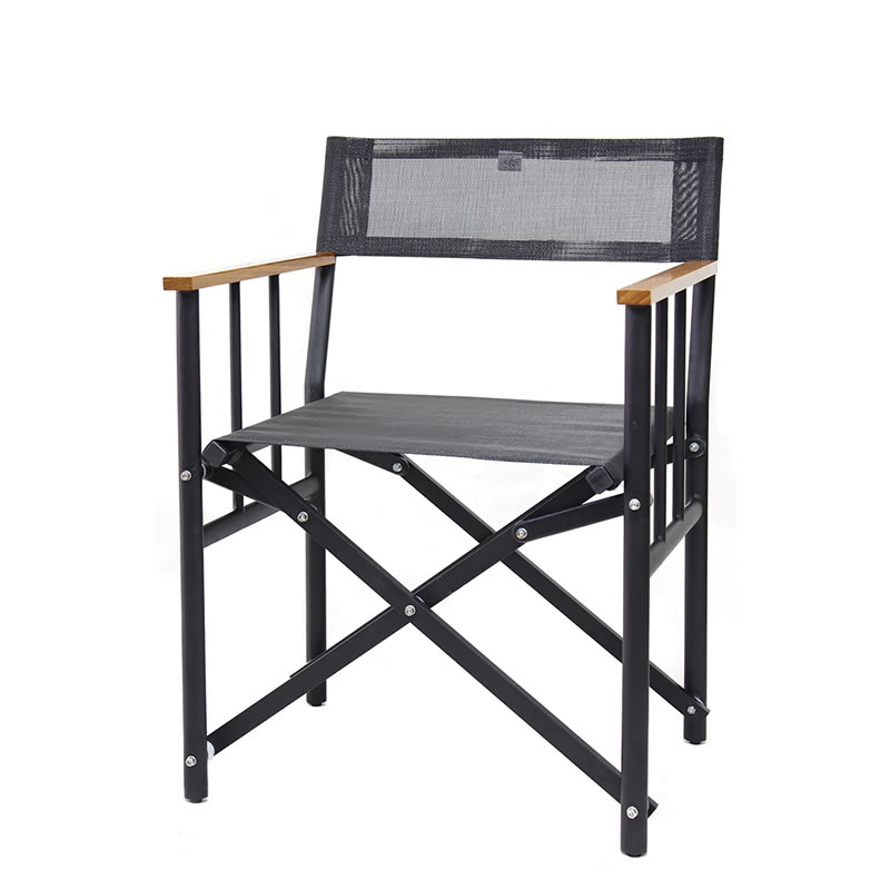 Poltrona para ambiente externo, estrutura em alumínio fundido e extrudado, recoberto por pintura eletrostática, tela sling, com detalhe em madeira. Ideal para ser utilizada em sua varanda, piscina, jardim ou até mesmo sua área interna.