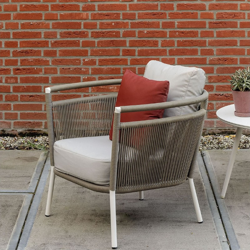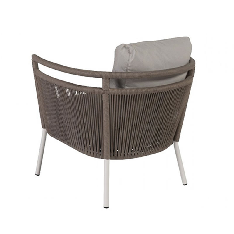 Poltrona para ambiente externo, estrutura em alumínio recoberto por pintura eletrostática, trama em corda náutica e almofadas removíveis em tecido impermeável oferecendo grande conforto ao sentar. Ideal para ser utilizada em sua varanda, piscina, jardim ou até mesmo sua área interna.