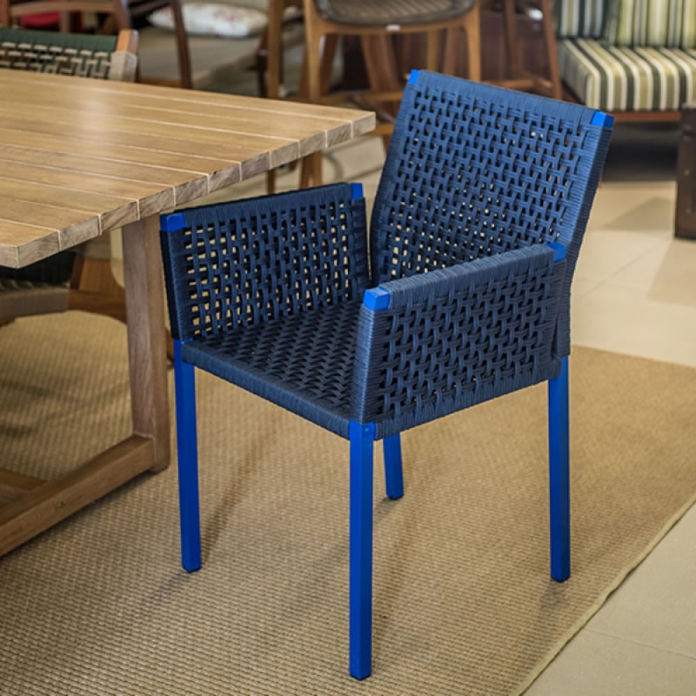 Poltrona para ambiente externo, estrutura em alumínio recoberto por pintura eletrostática, trama em corda náutica. Ideal para ser utilizada em sua varanda, piscina, jardim ou até mesmo sua área interna.