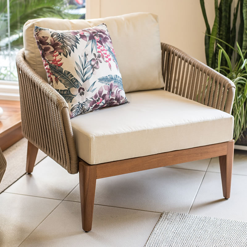 Poltrona Dior: Aconchego e Sofisticação em Corda Náutica para seu Espaço Externo