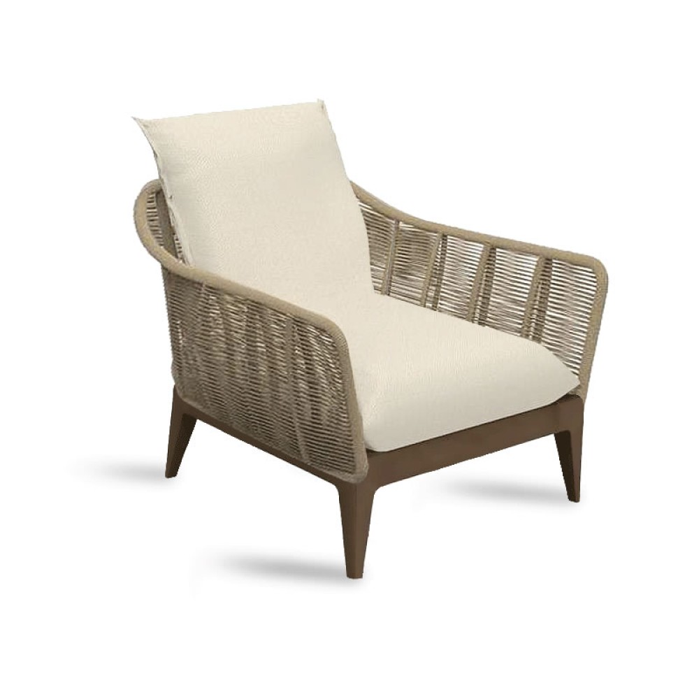A Poltrona Genova é construída com madeira maciça Cumaru, reconhecida por sua durabilidade e resistência às intempéries. O entrelaçamento artesanal em corda náutica de alta qualidade confere um visual sofisticado e moderno, enquanto as almofadas removíveis em tecido Acquablock com proteção UV garantem conforto e praticidade. Largura: 0,80m; Profundidade: 0,90m; Altura: 0,73m.