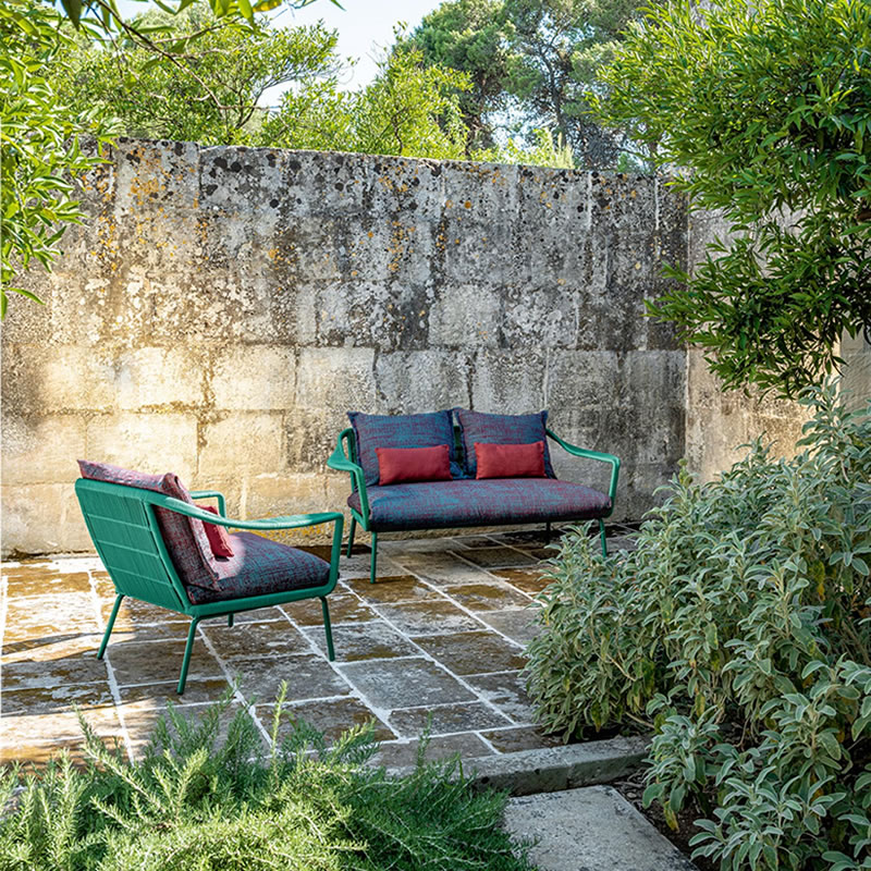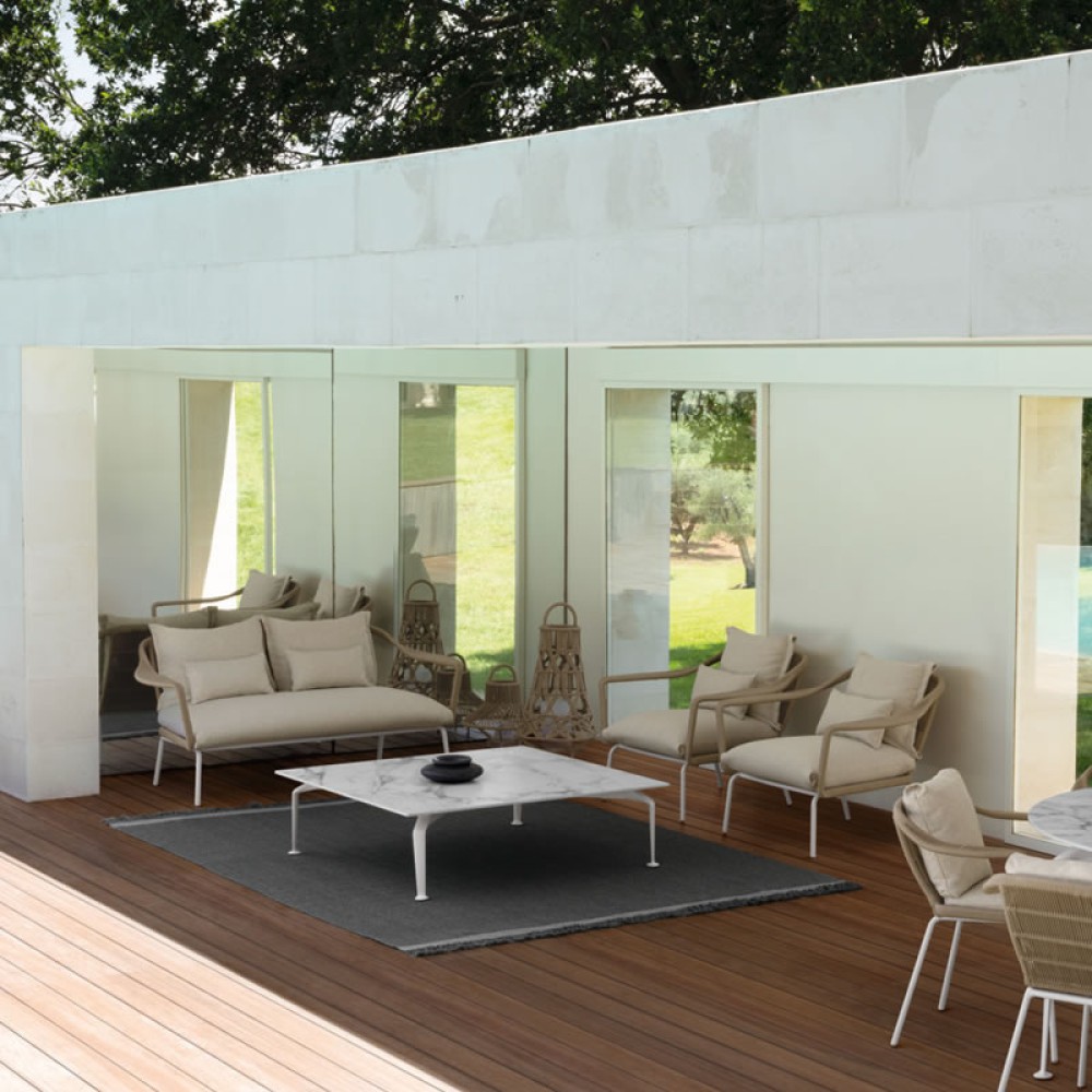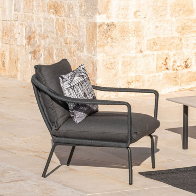 Poltrona para ambiente externo, estrutura em alumínio recoberto por pintura eletrostática, trama em corda náutica e almofadas removíveis em tecido impermeável oferecendo grande conforto ao sentar. Ideal para ser utilizada em sua varanda, piscina, jardim ou até mesmo sua área interna.
