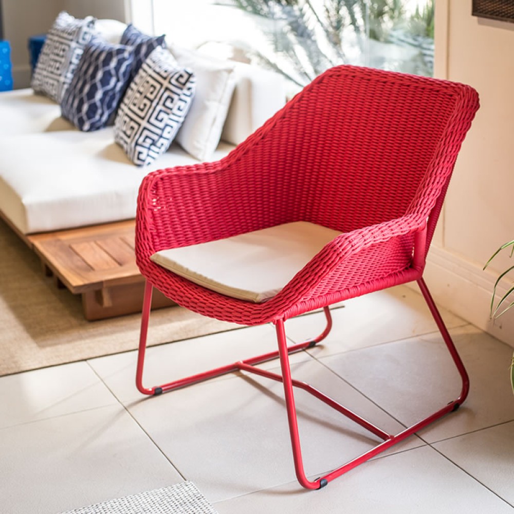 A Poltrona Portland se adapta a varandas elegantes, lounges de recepção ou salas de estar abertas ao jardim, criando pontos focais de aconchego e identidade visual.
