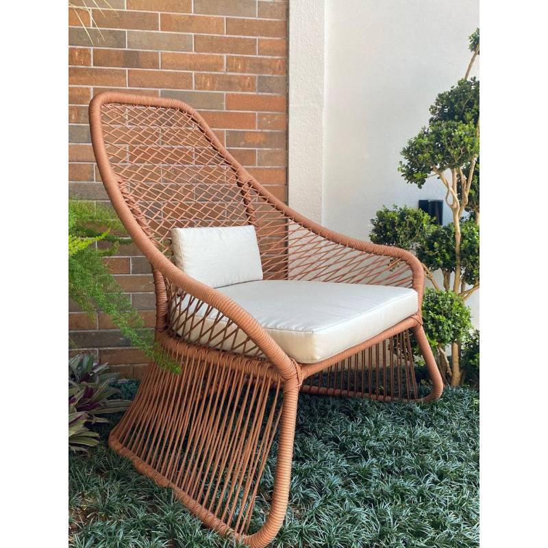 A corda náutica é de fácil limpeza e altamente resistente à umidade e raios UV. Para conservar a poltrona, basta um pano úmido com sabão neutro.