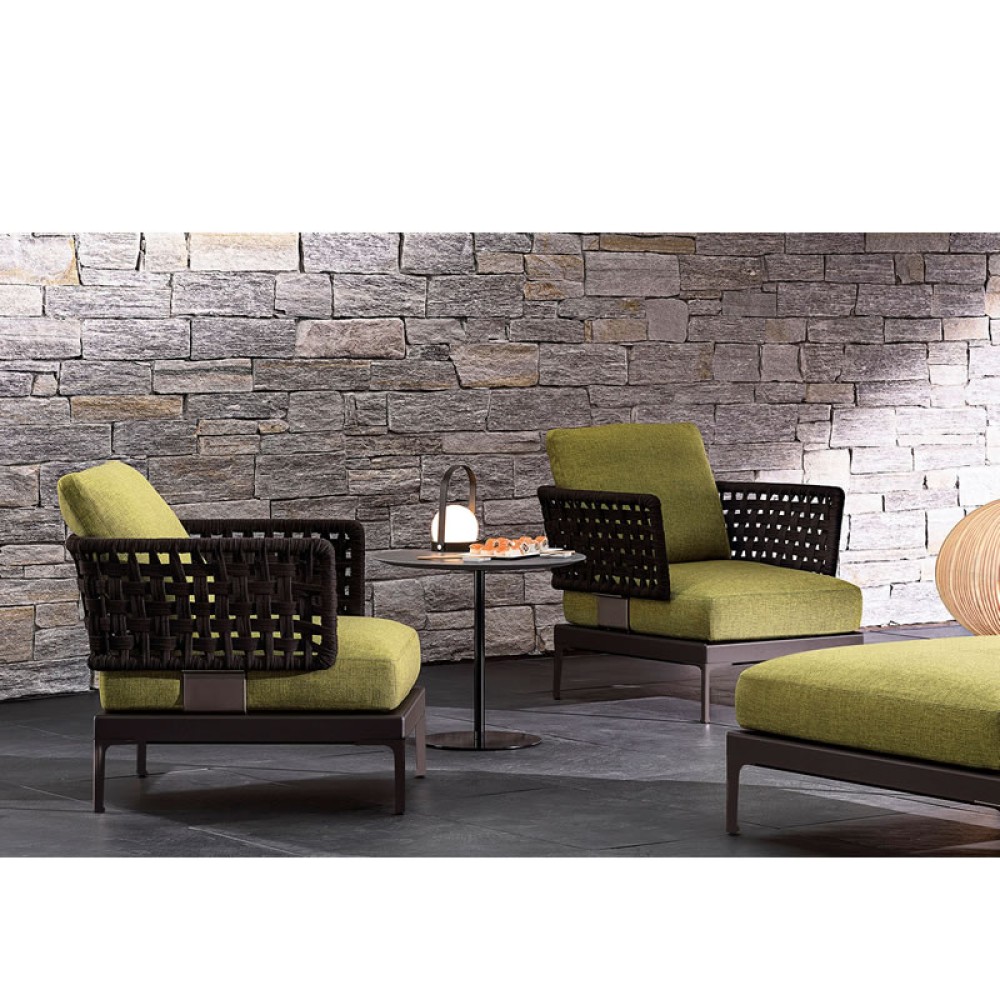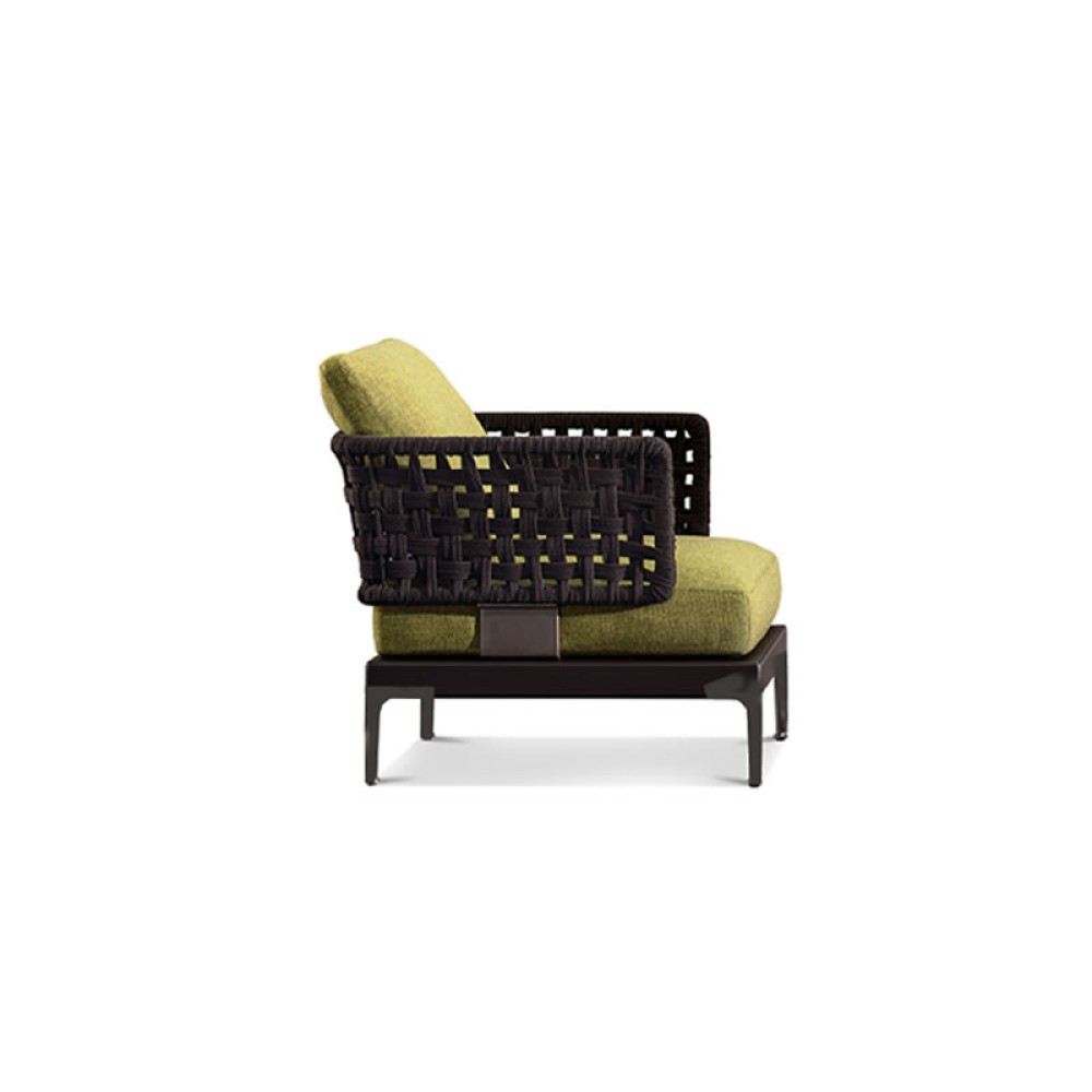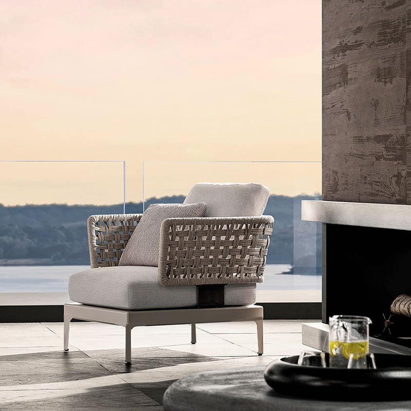 Poltrona para ambiente externo, estrutura em alumínio recoberto por pintura eletrostática, trama em corda náutica e almofadas removíveis em tecido impermeável oferecendo grande conforto ao sentar. Ideal para ser utilizada em sua varanda, piscina, jardim ou até mesmo sua área interna.