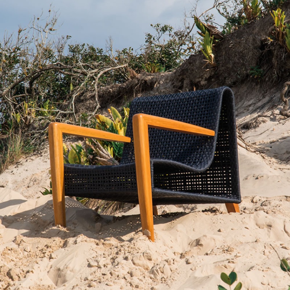 Poltrona Chaiten: Conforto e Sofisticação com Estrutura em Madeira Teca e Fibra Sintética