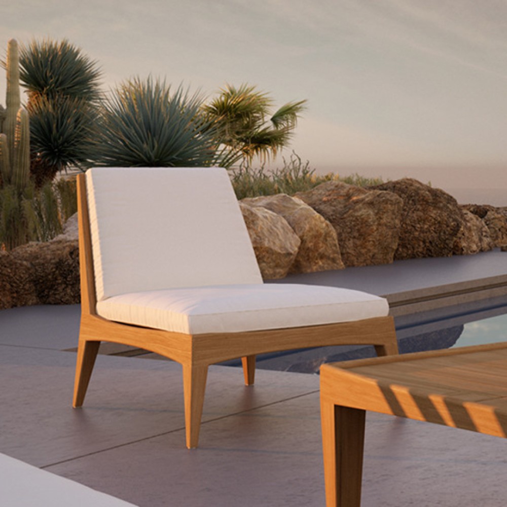 A Poltrona Elegance é ideal para compor diversos ambientes, desde varandas e jardins até áreas de piscina e espaços gourmet. Uma peça que une design, conforto e a beleza natural da madeira Cumarú.
