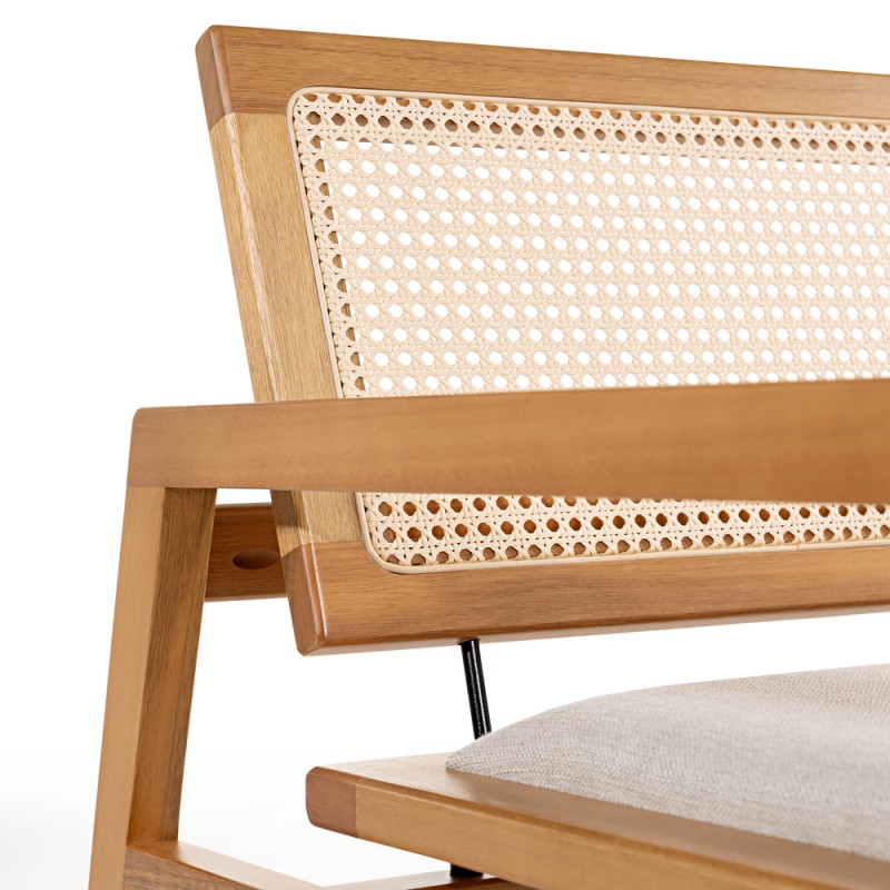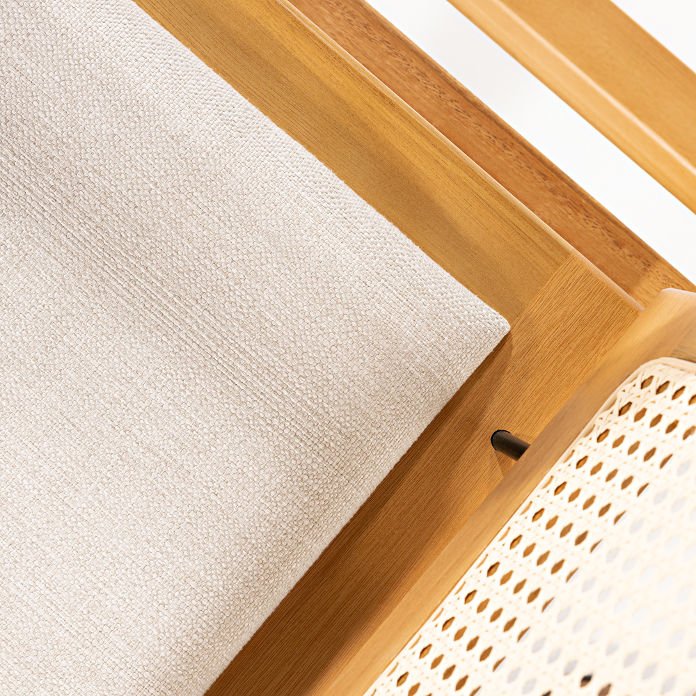 A estrutura em madeira com acabamento em verniz garante proteção extra e fácil limpeza com pano levemente umedecido. O estofado mantém sua aparência impecável com cuidados simples, preservando a beleza e funcionalidade por muitos anos.