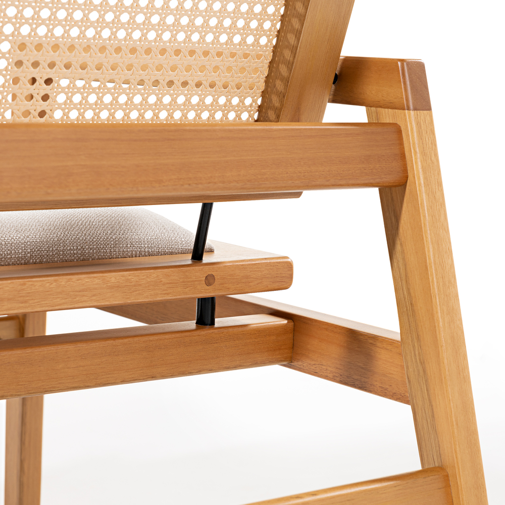 Poltrona Alba em Madeira com Braço e Assento Estofado – Elegância e Conforto em Cada Detalhe