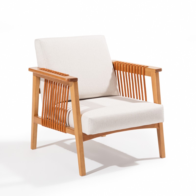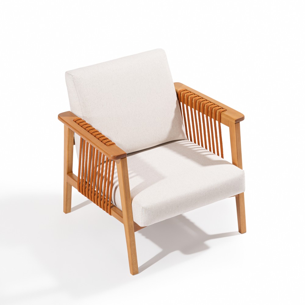 Poltrona em Madeira Eucalipto Gaia com Detalhe em Corda Náutica
