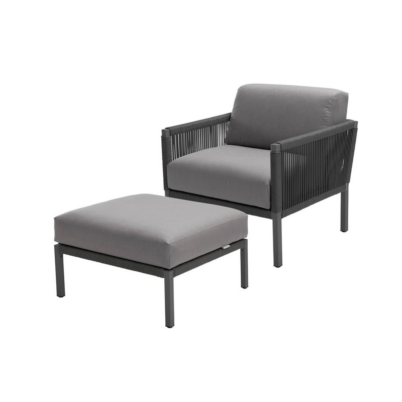 Puff para ambiente externo, estrutura em alumínio recoberto por pintura eletrostática, trama em corda náutica e almofadas removíveis em tecido impermeável oferecendo grande conforto ao sentar. Ideal para ser utilizada em sua varanda, piscina, jardim ou até mesmo sua área interna.