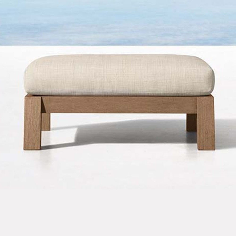 A madeira Cumarú é naturalmente resistente às intempéries, garantindo a durabilidade do puff por muitos anos. O acabamento em verniz com Eco Blindagem protege a madeira contra os raios UV e a umidade, realçando a beleza natural da madeira. A almofada, com tecido Acquablock, oferece conforto e praticidade, sendo resistente à água e à proteção UV.
