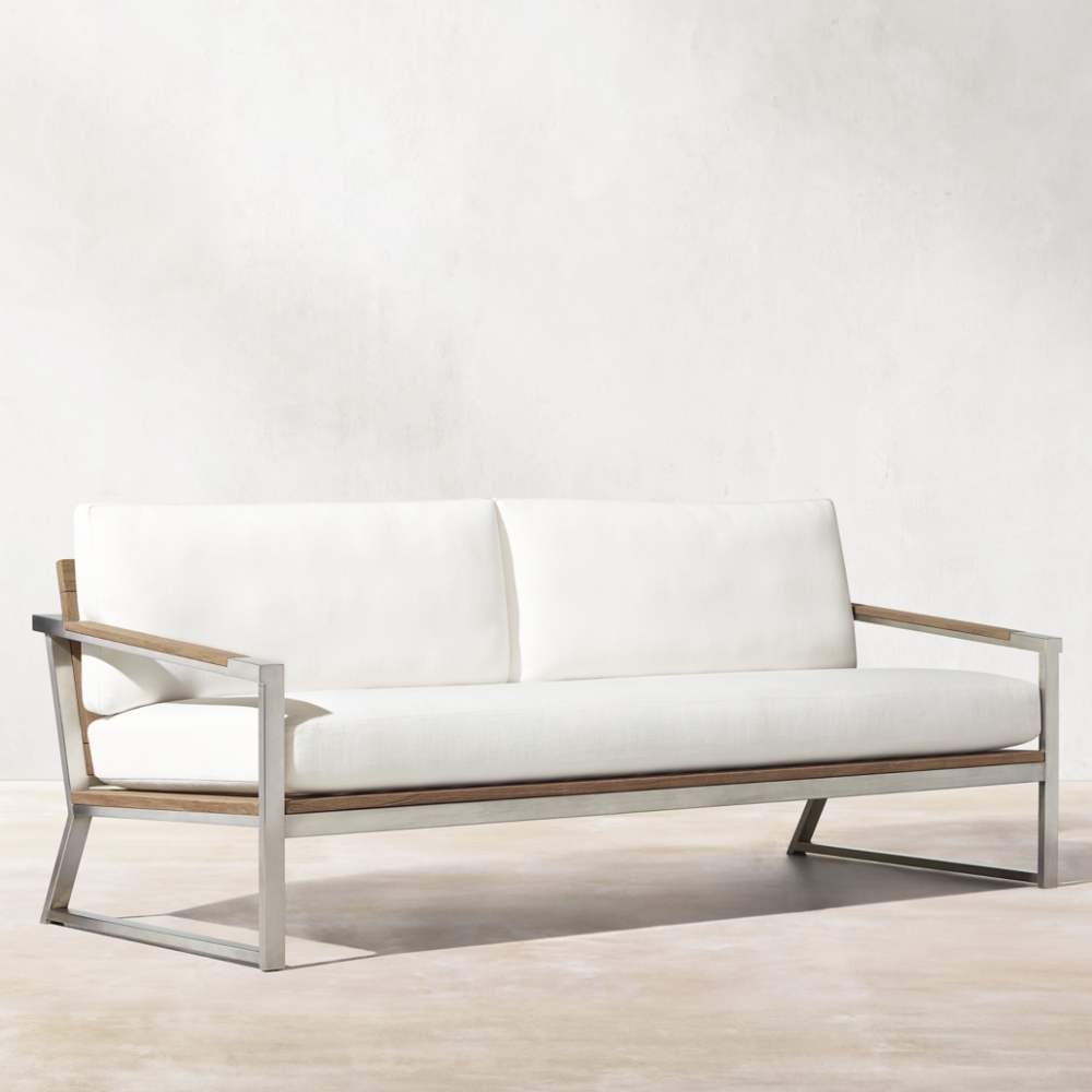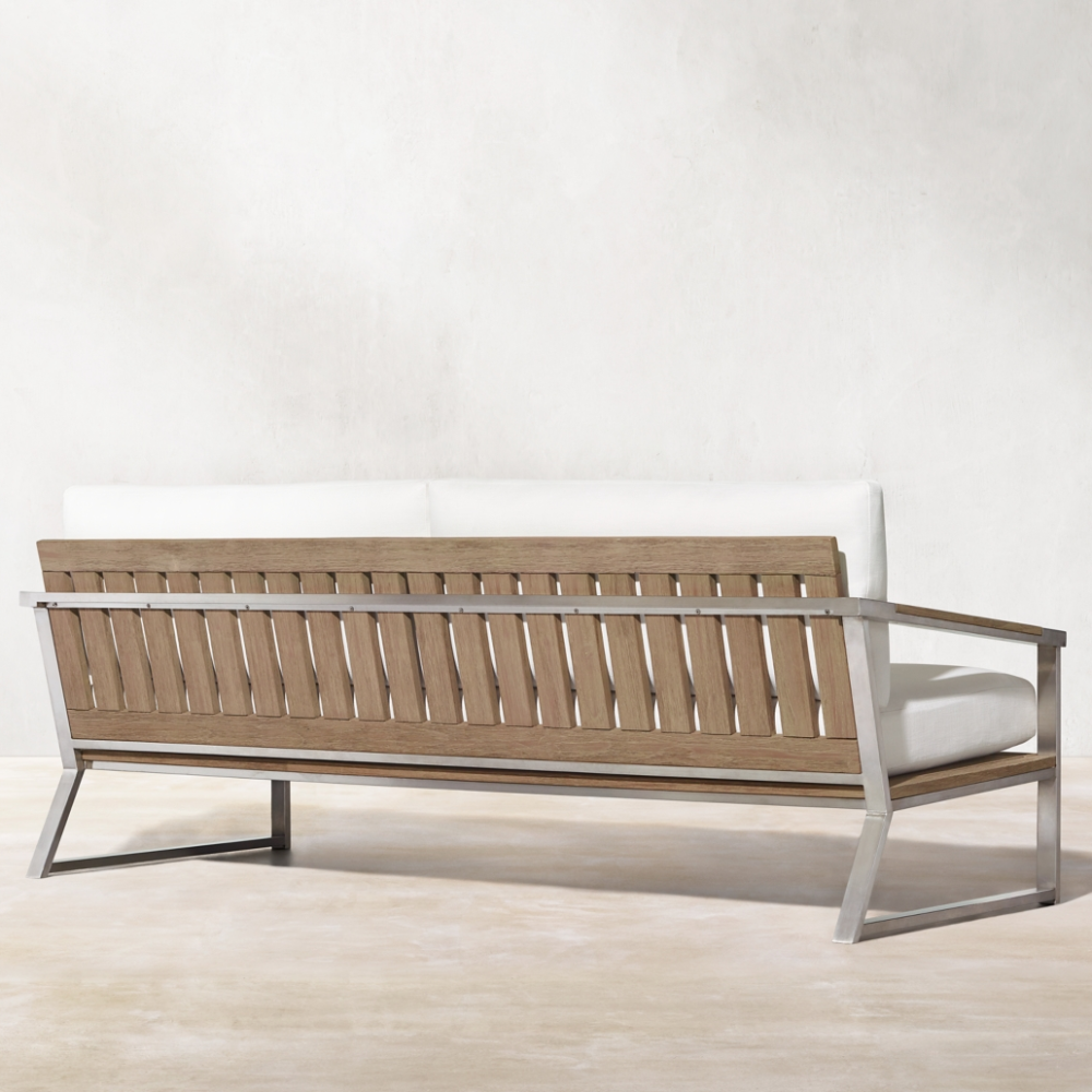 SOFÁ EM ALUMÍNIO E MADEIRA CUMARÚ CRETA 3 LUGARES