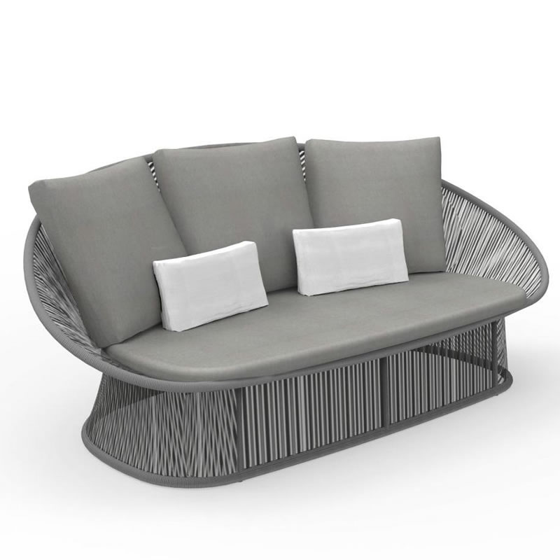 Sofá para ambiente externo, estrutura em alumínio recoberto por pintura eletrostática, trama em corda náutica e almofadas removíveis em tecido impermeável oferecendo grande conforto ao sentar. Ideal para ser utilizada em sua varanda, piscina, jardim ou até mesmo sua área interna.